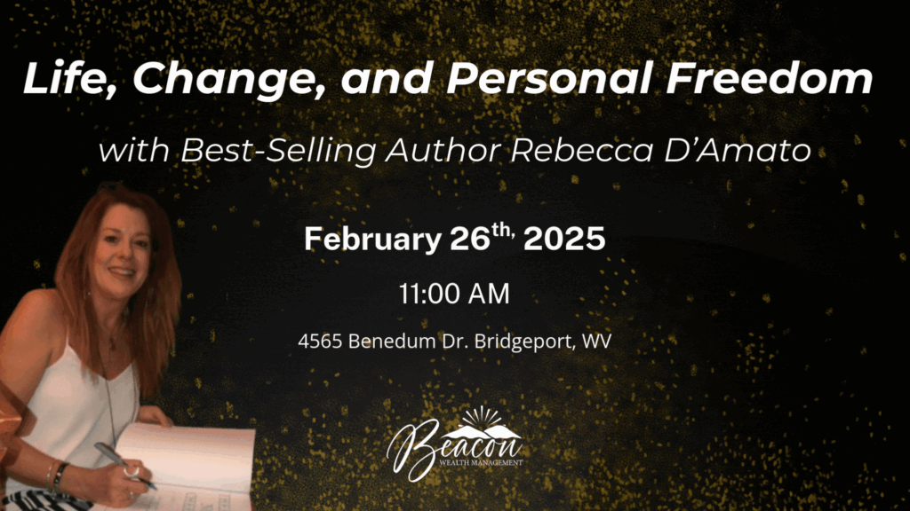 Join us for a special Wisdom 2 Wealth conversation with Rebecca D’Amato, a nationally recognized best-selling author. This engaging session is focused on recognizing fear, letting go of what holds you back, and learning how to step into this stage of life with greater confidence and freedom. Rebecca brings a thoughtful, relatable approach to facing uncertainty and choosing to live fully—no matter where you are on life’s path. We invite you to bring a guest, enjoy meaningful conversation, and take part in an engaging discussion that complements financial wisdom with personal insight.